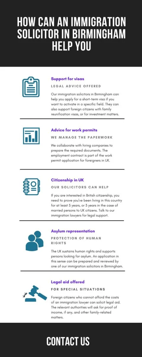 Persons interested in immigration and visa matters for UK are invited to contact our team of immigration solicitors in Birmingham and ask for complete legal advice.
